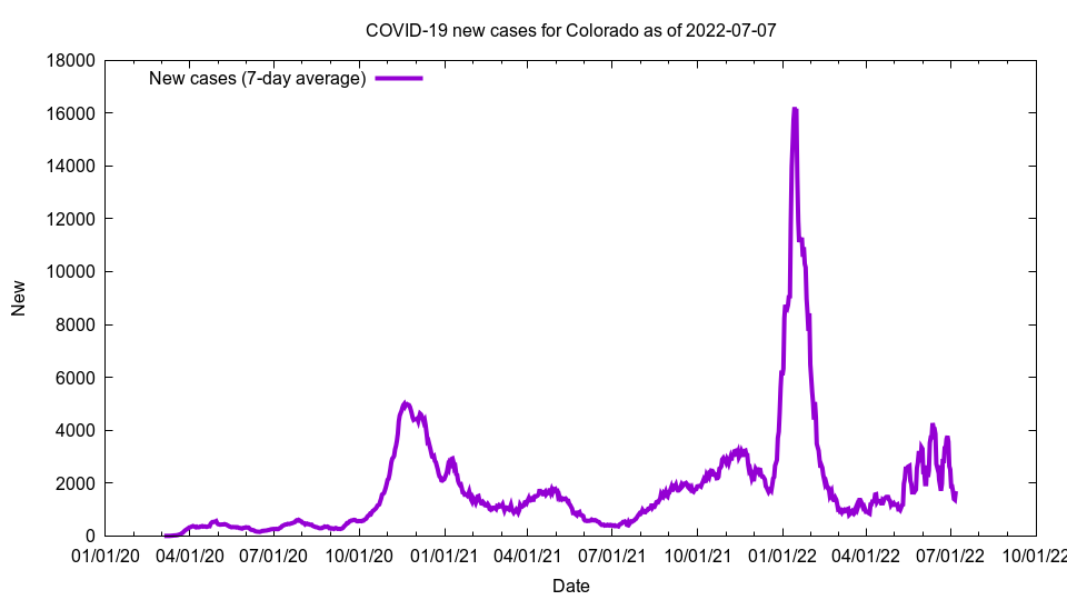 This image shows new cases for Colorado as of 2022-07-07