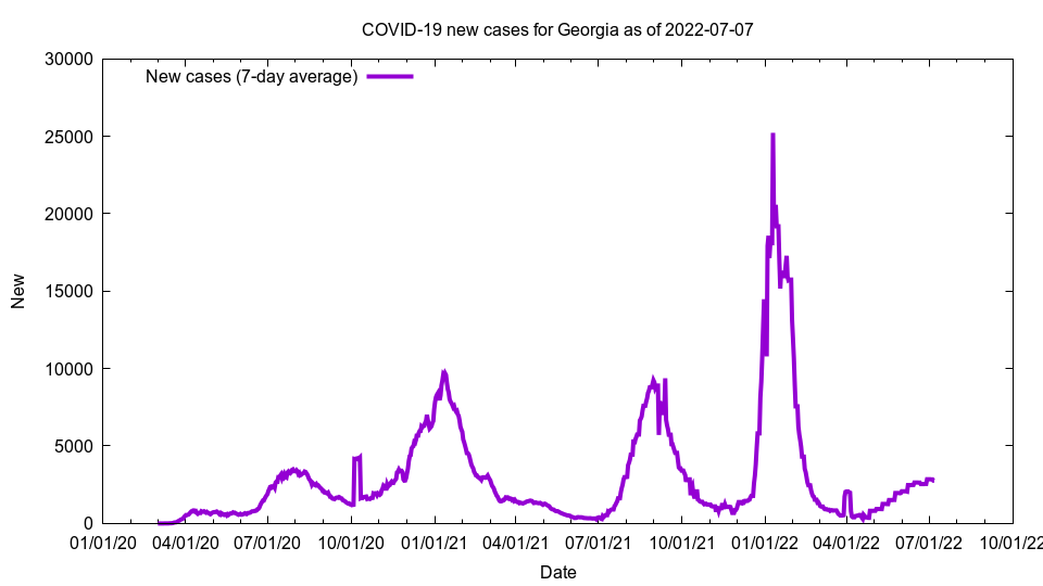 This image shows new cases for Georgia as of 2022-07-07