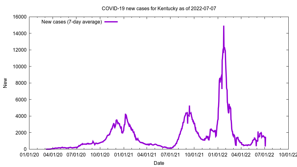 This image shows new cases for Kentucky as of 2022-07-07
