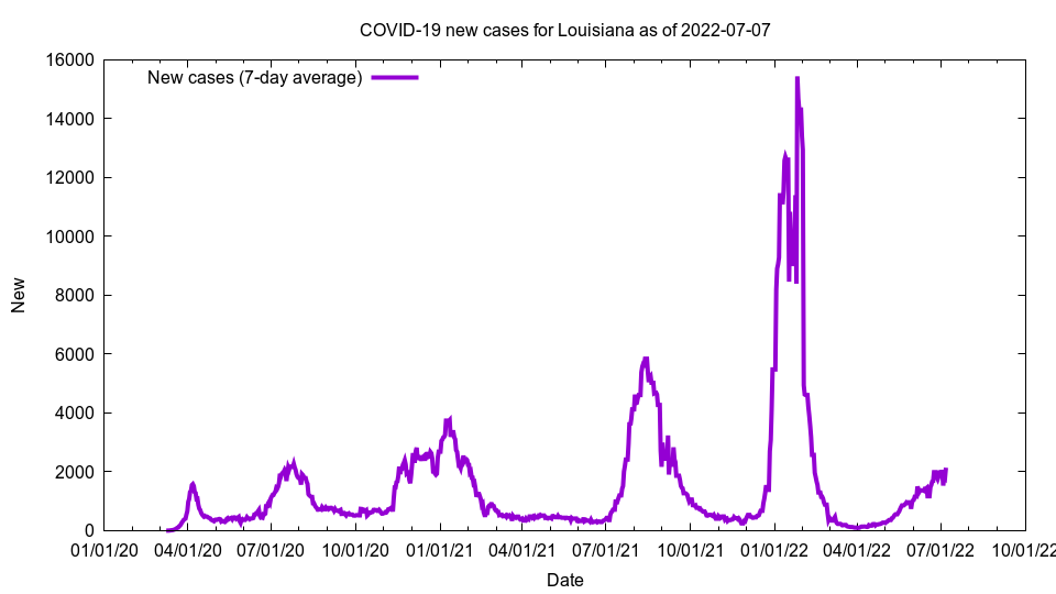 This image shows new cases for Louisiana as of 2022-07-07