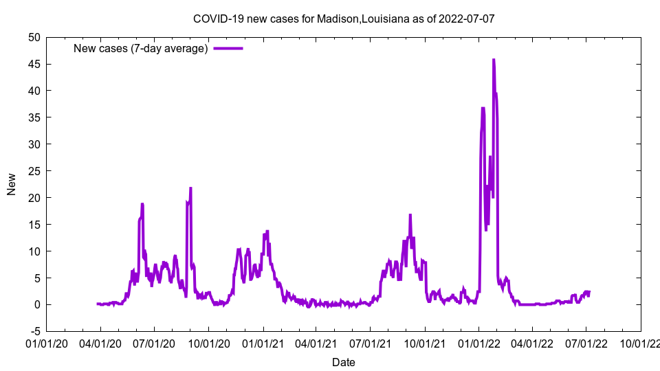 The data comes from The New York Times and the code to generate these pages is open source and available on GitHub. The number of actual COVID-19 cases and deaths are almost certainly higher than these figures.