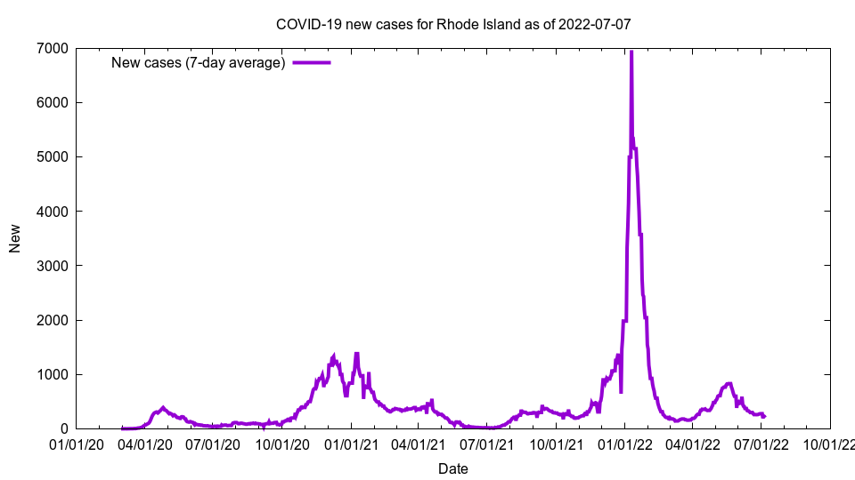 This image shows new cases for Rhode Island as of 2022-07-07