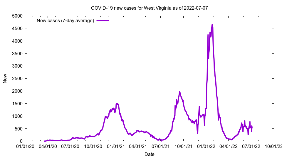 This image shows new cases for West Virginia as of 2022-07-07