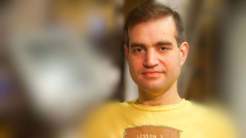 The picture is a self-portrait of Kaminsky that he released under a Creative Commons license. I have altered the work to make it a picutre I can include in my blog.